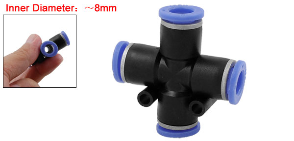 Product Name Connector Type Cross Shaped Material Plastic Inner Diameter (Approx) 8mm (Each Ends) Total Dimension (Approx) 4.5cm x 4.5cm x 1.5cm / 1.7" x 1.7" x 0.5" (L * W *T) Color Black, Blue Weight 16g Package Content 1 x Pneumatic Tube Connector - Reviews