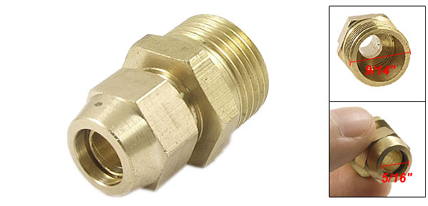 Product Name Quick Coupler Male Thread Diameter 16.3mm / 9/14"(0.642") Fit Tube(OD) 8mm / 5/16"(0.315") Overall Size 27 x 17 x 17mm / 1.06" x 0.67" x 0.67"(L*W*T) Color Brass Tone Material Brass Weight 23g Package Content 1 x Quick Coupler - Reviews