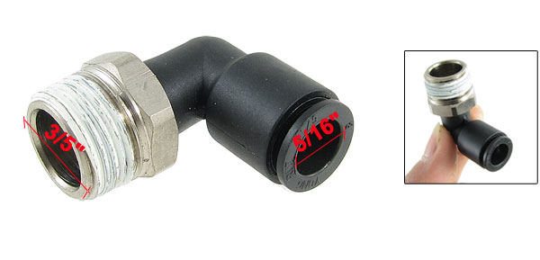 Product Name Pneumatic Quick Fitting Type Elbow Type One Touch Connector 8mm/ 5/16" Thread Connector 15mm/ 3/5" Material Plastic, Metal Size(Approx.) 3 x 2.7 x 1.7cm/ 1.2" x 1.1" x 0.7"(L*W*T) Main Color Black Weight 20g Package Content 1 x Pneumatic Quick Fitting - Reviews