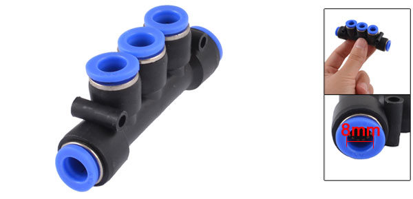 8mm 5 Way Splitter Push in Connector Pneumatic Fittings Black