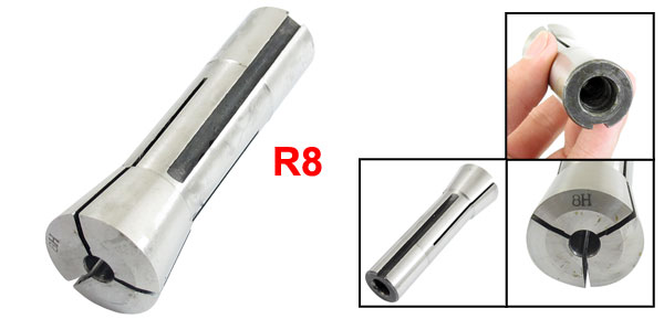 Product Name Spring Collet Model R8 Shank Diameter 24mm / 0.9" Clamping Diameter 12mm / 0.47" Overall Size 32 x 100mm/ 1.26" x 4" (Max.D * L) Material Stainless Steel Color Silver Tone Net Weight 320g Package Content 1 x Spring Collet - Reviews