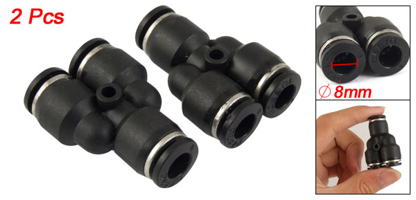 8mm Dia Y Shaped Push In Pneumatic Fitting Black 2 Pcs