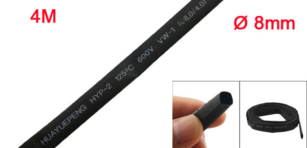 8mm Diameter Ratio 2:1 Black Polyolefin Heat Shrinking Shrinkable Tube 4M