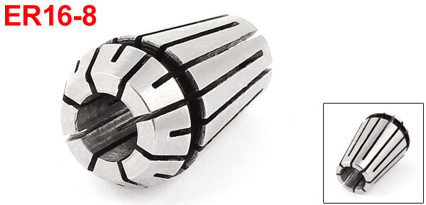 Details8mm ER16 Spring Collet Chuck CNC Milling Lathe Tool Bit Holder ER16-8  Product Name Spring Collet Model No. ER16-8 Gripping Diameter 8mm Overall Size 17 x 27.5mm / 0.67" x 1.1" (Max.D*H) Material Spring Steel Color Silver Tone Net Weight 20g Package Content 1 x Spring Collet