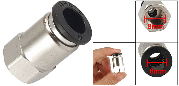 Item Name Pneumatic Fitting Total Size 25 x 15mm/1'' x 0.6'' (L*Max.D) Thread Diameter 8mm/0.3'' Fit Tube Outer Diameter 8mm/0.3'' Material Metal, Plastic Color Silver Tone, Black Weight 14g Package Content 1 x Pneumatic Fitting - Reviews