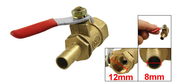 Product Name Ball Valve Female Thread Diameter 12mm/ 0.47" Female Thread Size 1/4"PT Ball Hole Diameter 6mm/0.24" Hole Tail OD 8mm/0.31" Level Handle Size 48 x 11mm/1.9" x 0.43"(L*W) Overall Size(Exclude Handle) 40 x 28 x 17mm/1.6" x 1.7"x 0.7"(L* W*H) Main Color Gold Tone & Red Material Metal, Brass, Plastic Weight 35g Package 1 x Ball Valve - Reviews
