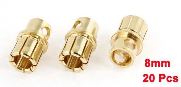 Product Name Banana Bullet Connector Male Material Metal Color Gold Tone Each Length 14mm / 0.6" Outer Diameter 8 mm / 0.31" Weight 55g Package Content 20 x Banana Bullet Connector Male - Reviews