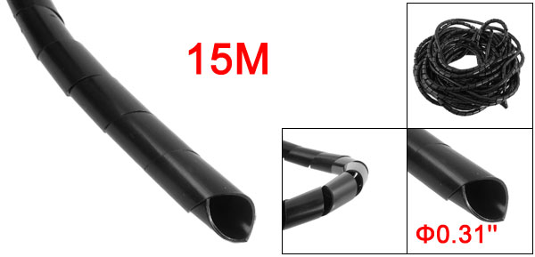 Product Name Spiral Wrap Material Polyethylene Color Black Total Length(Approx.) 15M / 49 Ft (590.6'') Outside Diameter 8mm / 0.31'' Thickness 1mm / 0.04'' Net Weight 158g Package Content 1 x Spiral Wrap - Reviews