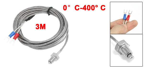 8mm Screw Dia 0-400C Thermocouple K Type Temperature Sensor 118" Long