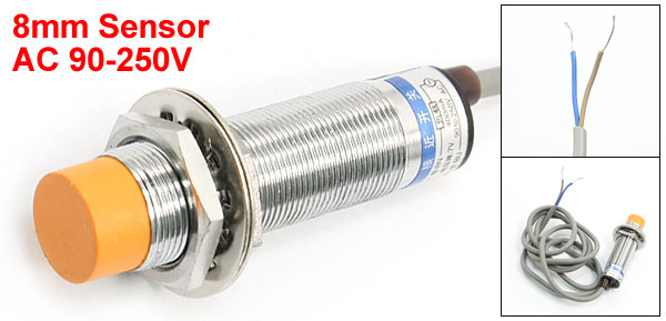 Details8mm Sensor Inductive Proximity Switch Detector AC 90-250V 400mA N/O  Product Name Inductive Proximity Switch Model LJ18A3-8-J/EZ Wire Type 2 Wire Type (Gray, Blue) Switch Appearance Type Cylinder Type Theory Inductive Sensor Output Type AC NO Detecting Distance 8mm Sensor Diameter of Head 16mm/0.63" Supply Voltage AC 90-250V Current Output 400mA Detect Object Metal Size 6.8 x 3.3cm/2.7" x 1.3" (L*Max. Dia) Cable Length 1.1m/3.6Ft External Material Plastic, Alloy Net Weight 82g Color Silver Tone, Orange, Gray Package Content 1 x Inductive Proximity Switch