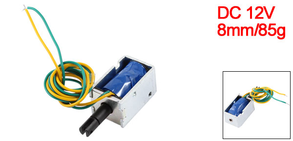 Product Name Solenoid Electromagnet Rated Voltage & Current DC12V 0.66A Power 7.99W Action Form Pull Type Stroke & Force 8mm/85g