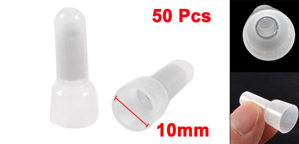 Product Name Closed End Wire Connector Model CE5 Tin-plated Tube Inner Dia 5mm/ 0.2" Tin-plated Tube Length 8mm/ 0.30" Inner Dia 10mm/ 0.39" Total Size (Each) 11 x 25mm/ 0.45" x 1" (D*L) Color White Material Nylon, Metal Weight 30g Package 50(+/-2%) x Closed End Wire Connector - Reviews