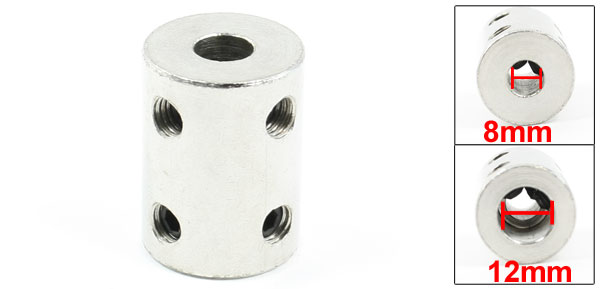 8mm to 12mm Bore Robot Motor Wheel Coupling Coupler Silver Tone 8 x 12mm
