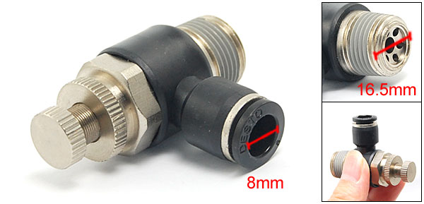 Product Name Pneumatic Speed Controller Inner Diameter (Black End) 8mm / 0.314" Thread Outer Diameter 16.5mm / 0.65" (Approx) Total Size 50 x 40mm / 2" x 1.6" (L*W) Material Plastic, Metal Color Black, Silver Tone Weight 66g Package Content 1 x Speed Controller - Reviews