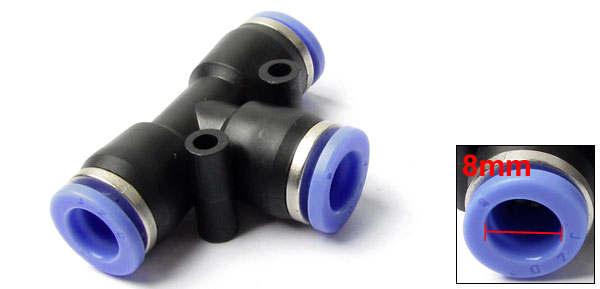 Product Name Pneumatic Quick Fitting Connector Type 8mm to 8mm (T-shaped) Material Plastic Size (Approx) 49 x 32 x 15mm / 1.93" x 1.25" x 0.69" (L*W*H) Color Black, Blue Weight 10g Package Content 1 x Pneumatic Quick Fitting - Reviews