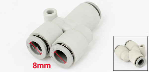 Product Name Quick Fittings Design U Shaped , 3 Ways Connector Type 8mm to 8mm Material Plastic Size (Approx) 42 x 30 x 15mm / 1.65" x 1.1" x 0.59" (L*W*T) Color White Weight 12g Package Content 1 x Pneumatic Quick Fittings - Reviews