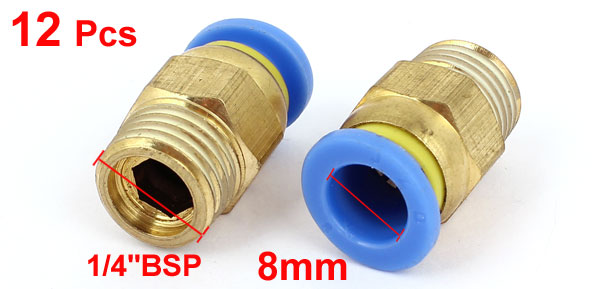 8mm Tube 1/4"BSP Male Thread Quick Connector Pneumatic Air Fittings 12 Pcs
