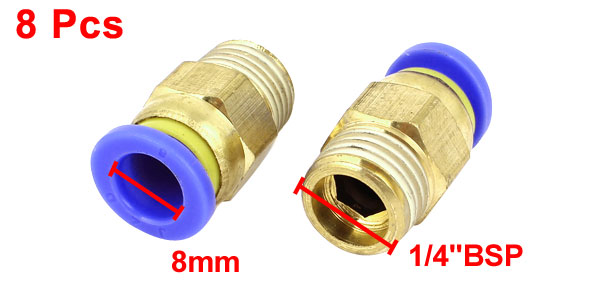 8mm Tube 1/4"BSP Male Thread Quick Connector Pneumatic Air Fittings 8 Pcs