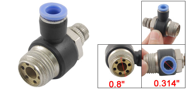 Product Name Pneumatic Speed Controller Inner Diameter (Blue End) 8mm / 0.314" Thread Outer Diameter 20mm / 0.8" (Approx) Total Size 50 x 43.5 x 26mm / 2" x 1.7" x 1" (L*W*T) Material Plastic, Metal Color Blue, Silver Tone Weight 78g Package Content 1 x Speed Controller - Reviews