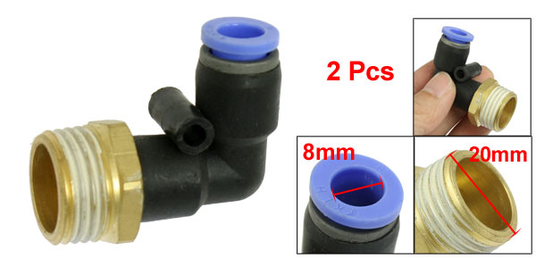 Product Name Pneumatic Quick Coupler Material Plastic, Metal Thread Size 1/2" PT Thread Diameter 20mm Tube Diameter 8mm/ 0.315" Total Size (Each ) 43 x 34 x 14mm/1.7" x 1.3" x 0.55" (L*W*T) Color Black, Blue, Gold Tone Weight 57g Package Content 2 x Pneumatic Quick Coupler - Reviews