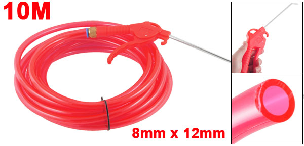 8mm x 12mm Clear Red Polyurethane Tube PU Hose Pipe 10M 32.8 Ft w Air Blow Gun