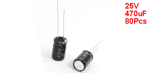 8mm x 12mm Radial Lead Aluminum Electrolytic Capacitor 25V 470uF 80Pcs