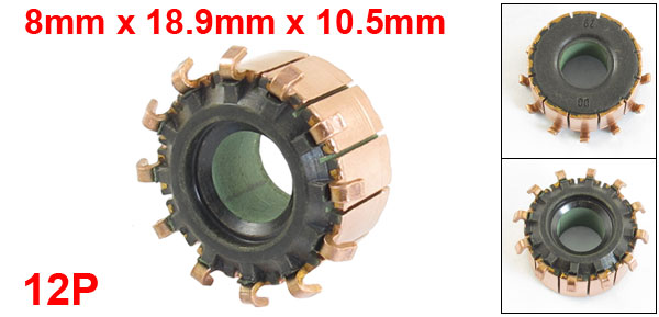 Product Name Motor Commutator Copper Bar Number 12P Total Length 8 x 18.9 x 10.5mm/0.3" x 0.7" x 0.4"(ID*OD*T) Material Copper, Feerite Color Copper Tone, Black Net Weight 7g Package Content 1 x Motor Commutator - Reviews