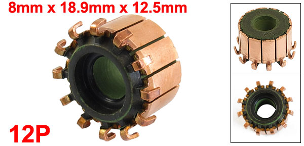 Product Name Commutator Color Copper Tone Material Copper, Steel Size 8 x 18.9 x 13.5mm / 5/16" x 3/4" x 17/32" (Shaft D*OD*H) Gear Tooth Quantity 12 Pcs Net Weight 10g Package Content 1 x Commutator - Reviews