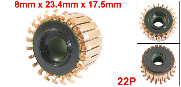 Product Name Motor Commutator Copper Bar Number 22P Total Length 8 x 23.4 x 17.5mm/0.3" x 0.8" x 0.7"(ID*OD*T) Material Copper, Feerite Color Copper Tone, Black Net Weight 22g Package Content 1 x Motor Commutator - Reviews