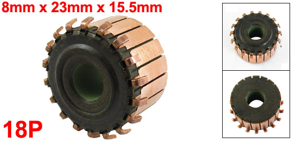Product Name Motor Commutator Copper Bar Number 18P Total Length 8 x 23 x 15.5mm/0.3" x 0.9" x 0.6"(ID*OD*T) Material Copper, Feerite Color Copper Tone, Black Net Weight 15g Package Content 1 x Motor Commutator - Reviews