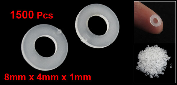 8mm x 4mm x 1mm Flat Insulator Nylon Washers White 1500 Pcs