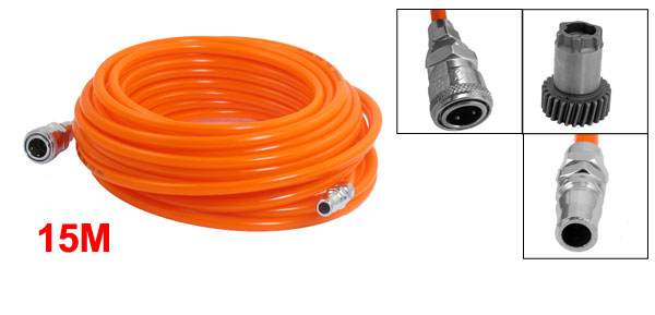 Product Name Recoil Air Hose Hose Diameter 8 x 5mm/0.31'' x 0.2'' (Outside Diameter * Inner Diameter) Working Pressure 8Kg/cm2 Max. Pressure 10Kg/cm2 (Lasting 20h) Anti-abrasion 35mg2 Material PU, Metal Total Length 15M/590.6'' (49 Ft)