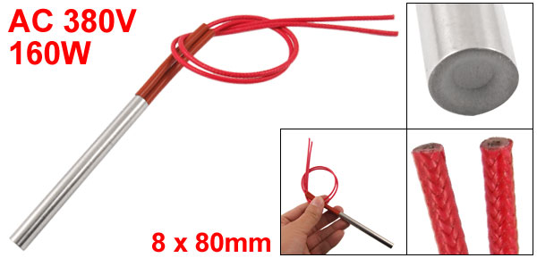 Product Name Cartridge Heater Material Stainless Steel, PVC, Nylon Rated Voltage AC 380V Power 160W Heater Size (Approx.) 8 x 80mm/ 0.31'' x 3.1'' (D * L)