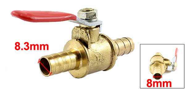 8mm x 8.3mm Hose Tail Pipe Fitting Red Lever Handle Ball Valve