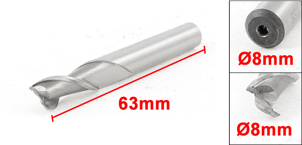 Product Name End Mill Cutter Material HSS Cutting Diameter 8mm / 0.3" Cutting Depth 19mm / 0.75" Shank Diameter 8mm / 0.3" Total Length 63mm / 2.5" Mill Cutter Color Silver Tone Weight 25g Package Content 1 x Straight Shank End Mill Cutter