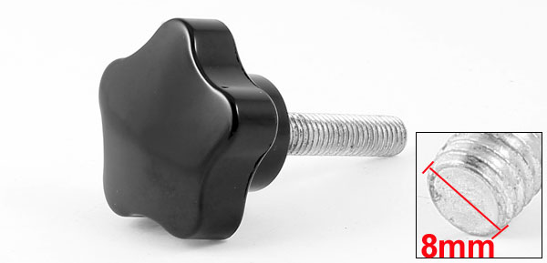 8mmx35mm Male Thread Metal Star Head Clamping Knob Black Silver Tone