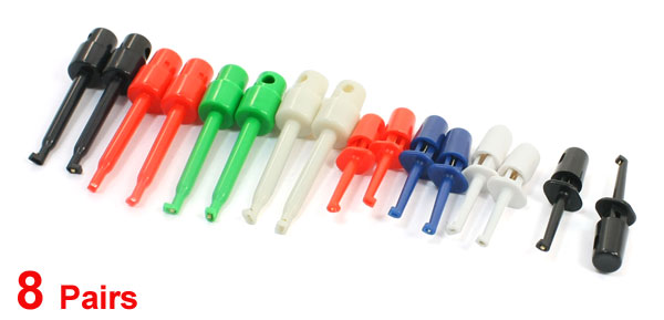 Hole Size(Mini) 5 x 2mm / 0.2" x 0.08"(L*W) Hole Dia(Max) 4mm/ 0.16" Color Colored Material Metal ,Plastic Weight 23g Package 8Pair x Electrical Testing Hooks - Reviews