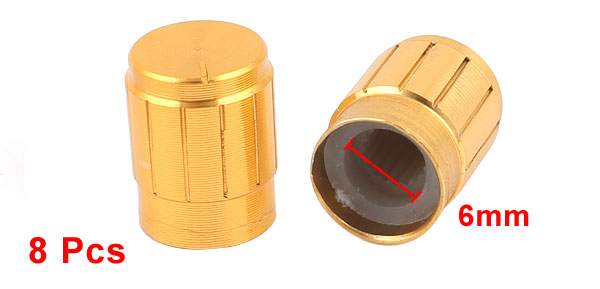 Product Name Potentiometer Control Knob Fit Insert Shaft Dia 6mm Knurled Shaft Total Size 13 x 17mm/0.51" x 0.67"(D*H) Material Plastic, Metal Color Gold Tone Weight 16g Package Included 8 x Potentiometer Control Knobs - Reviews