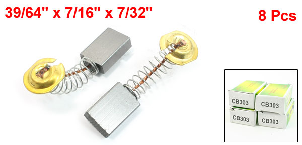 Product Name Carbon Brush Model No. CB-303 Carbon Brush Size (Approx) 15.5 x 11 x 5.5mm / 39/64" x 7/16" x 7/32"(L*W*T) Wire Length 30mm / 1.2" Material Carbon, Copper, Metal Main Color Dark Gray Net Weight 35g Package Content 8 Pcs x Carbon Brush - Reviews