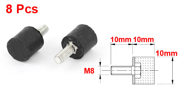 Product Name Rubber Vibration Isolator Mounts Material Metal, Rubber Thread Size (Approx.) M4 x 10mm(Dia.* L) Rubber Size (Approx.) 10 x 10mm / 3/8" x 3/8" (Dia.*H) Overall Height(Approx) 20mm / 0.8" Color Black, Silver Tone Weight 17g Package Content 8pcs x Rubber Vibration Isolator Mounts - Reviews