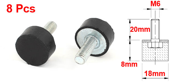Product Name Rubber Vibration Isolator Mounts Material Metal, Rubber Thread Size (Approx.) M6 x 20mm(Dia.* L) Rubber Size (Approx.) 18 x 8mm / 7/8" x 3/8" (Dia.*H) Overall Height(Approx) 25mm / 1" Color Black, Silver Tone Weight 79g Package Content 8pcs x Rubber Vibration Isolator Mounts - Reviews