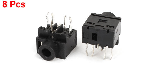 8Pcs Black Female 5 Pin 3.5mm Stereo Jacks PCB Mount Connector for Headphone