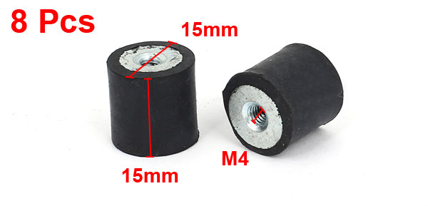 8PCS M4 15 x 15mm Double Side Anti Vibration Rubber Mount Isolator Bobbin