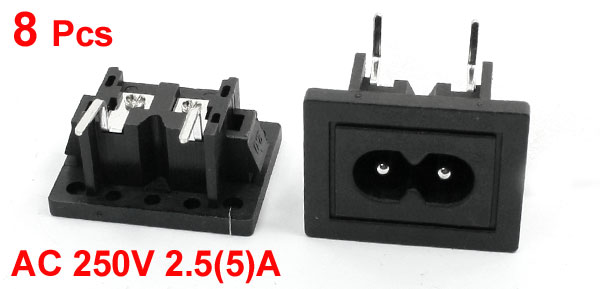 Product Name C8 Inlet Adapter Power Supply AC 250V 2.5(5)A Pin Number 2 Top Square Face Size(Approx.) 3 x 24mm / 1.2" x 0.95" (L * W ) Mount Size(Approx.) 30 x 17 x 12mm / 1.2" x 0.7" x 0.5" (L * W * Depth) Material Plastic, Metal Color Black Weight 56g Package Content 8 x C8 Inlet Adapter - Reviews