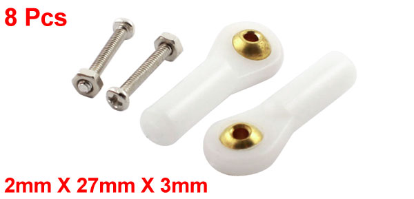 8Pcs RC Car White 2X27X3mm Rod End Metal Ball Head Buckle Joints Set w Screws