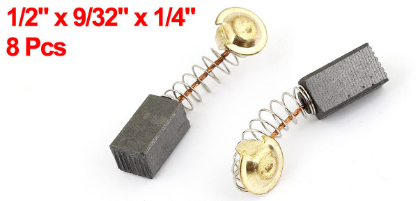 Product Name Carbon Brush Carbon Brush Size 12 x 7 x 6mm/ 1/2" x 9/32" x 1/4"(L*W*T) Total Length(Approx) 30mm/ 1.18" Main Material Carbon, Metal Color Dark Gray, Gold Tone Net Weight 26g Package Content 8 Pcs x Carbon Brush - Reviews