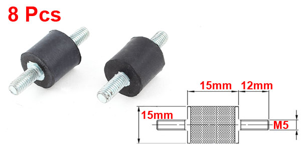 Product Name Rubber Vibration Isolator Mounts Material Metal, Rubber Thread Size (Approx.) M5 x 12mm(Dia.* L) Rubber Size (Approx.) 15 x 15mm / 5/8" x 5/8" (Dia.*H) Overall Height(Approx) 38mm / 1.5" Color Black, Silver Tone Weight 70g Package Content 8pcs x Rubber Vibration Isolator Mounts - Reviews