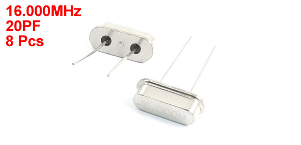 Product Name Crystal Oscillator Output Frequency 16.000MHz Package Type HC-49S Frequency Tolerance ±20ppm Load Capacitance 20PF Mounting Type DIP Effective Series Resistance 30ohm Pins Number 2 Color Silver Tone Each Size 16 x 11 x 4.3mm/ 0.63" x 0.43" x 0.17"(H*L*W) Weight 5g Package Content 8 x Crystal Oscillators - Reviews
