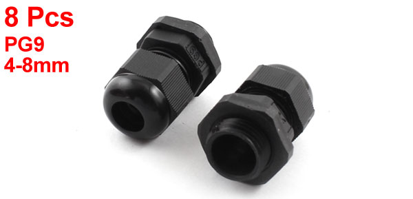 8Pcs Waterproof Adjustable PG9 4-8mm 33 x 22mm Black Cables Gland