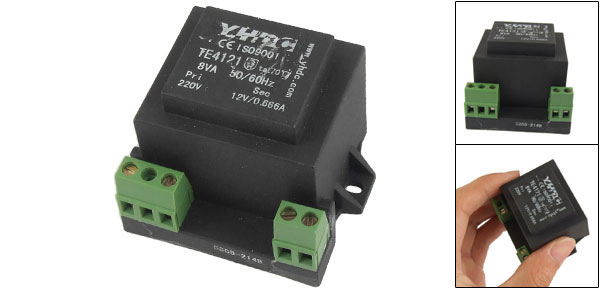Product Name Encapsulated Transformer Model TE4121 Power 8VA, 50/60 Hz Primary 220V Secondary 12V, 0.666A Total Size(Approx.) 58 x 47 x 40cm/22.8'' x 18.5'' x 15.7'' (L*W*H) Color Black Weight 253g Package Content 1 x Encapsulated Transformer - Reviews
